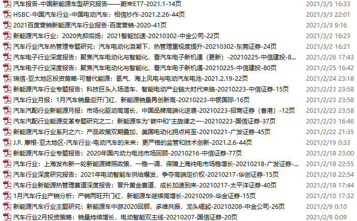 新能源汽车、电动汽车资料包,月度新增21份(2021.2.6-3.6)