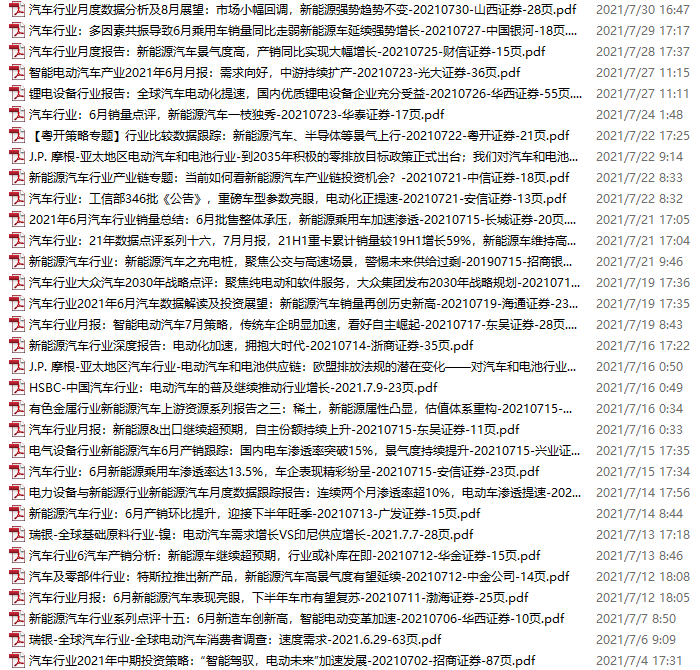 新能源汽车、电动汽车资料包,月度新增32份(2021.7.3-7.31)