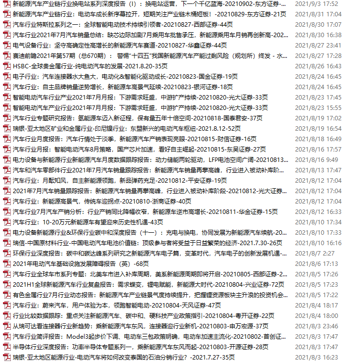新能源汽车、电动汽车资料包,月度新增35份(2021.7.31-9.4)