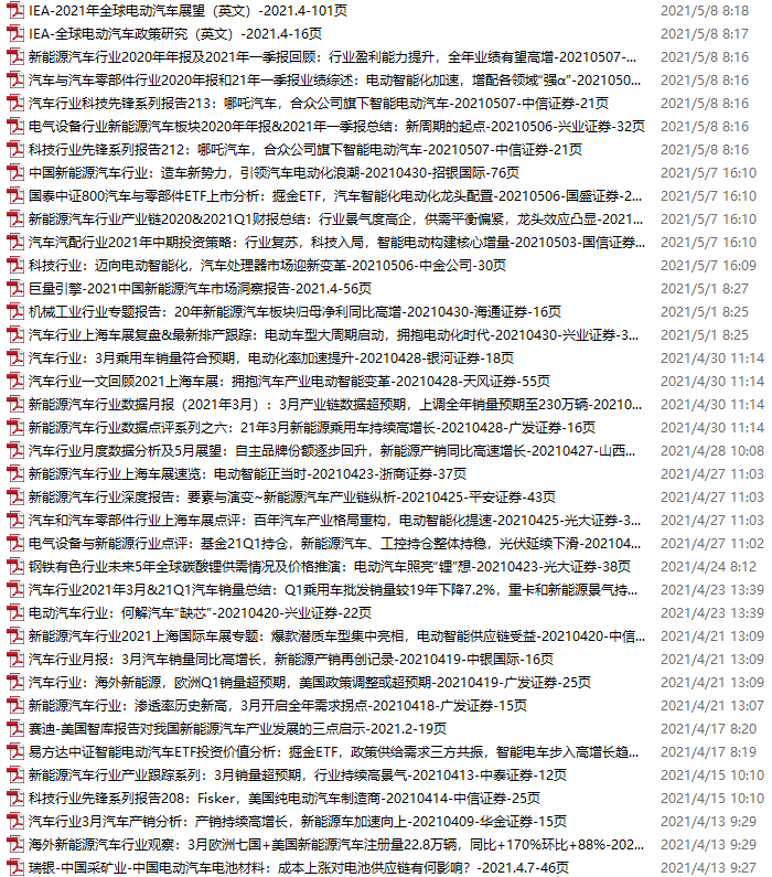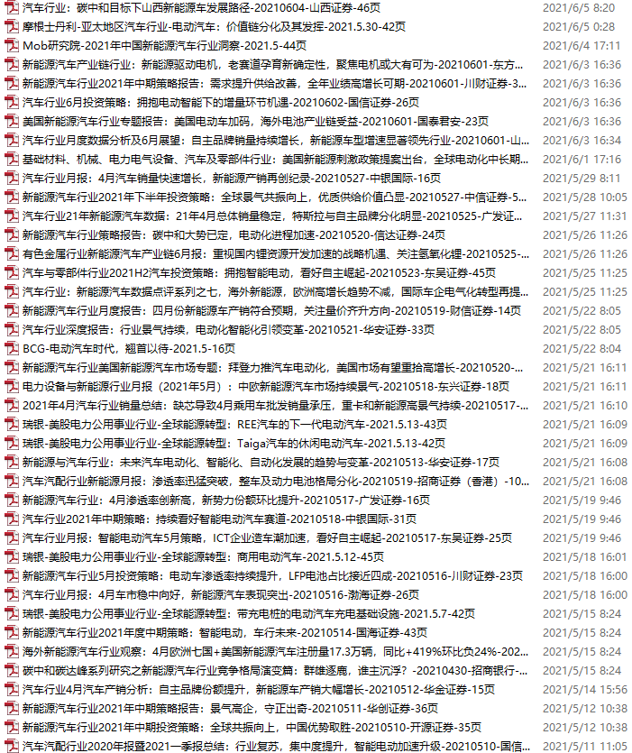 新能源汽车、电动汽车资料包,月度新增40份(2021.5.8-6.5)