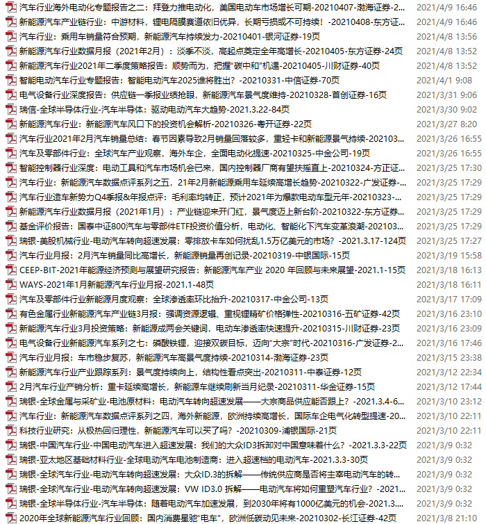 新能源汽车、电动汽车资料包,月度新增36份(2021.3.6-4.10)