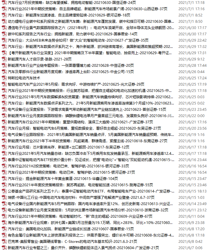 新能源汽车、电动汽车资料包,月度新增40份(2021.6.5-7.3)