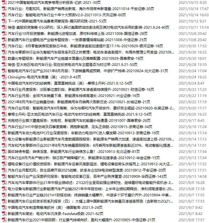 新能源汽车、电动汽车资料包,月度新增36份(2021.9.4-10.16)