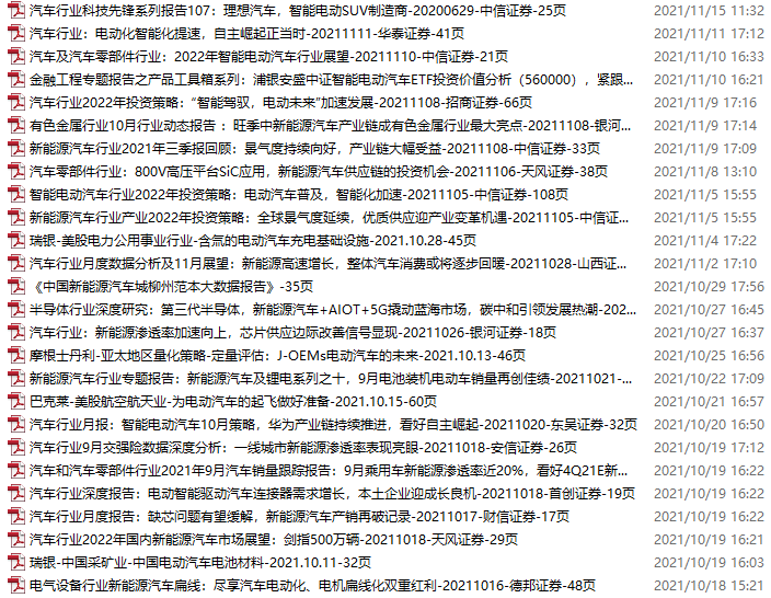 新能源汽车、电动汽车资料包,月度新增35份(2021.11.13-12.11)