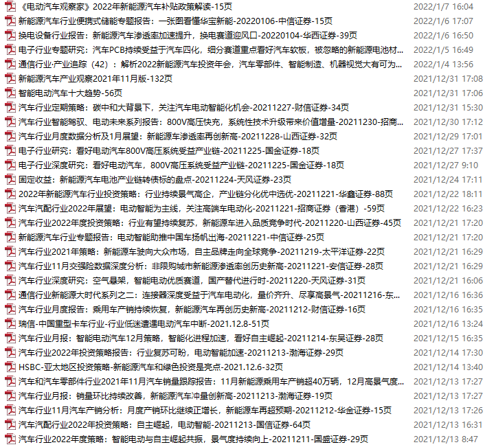 新能源汽车、电动汽车资料包,月度新增31份(2021.12.11-2022.1.8)