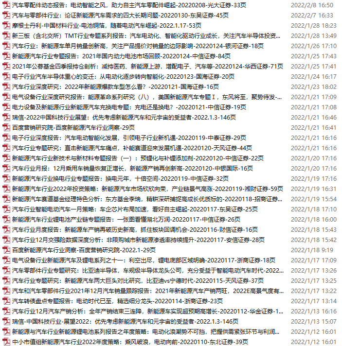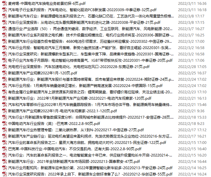 新能源汽车、电动汽车资料包,月度新增28份(2022.2.12-3.12)