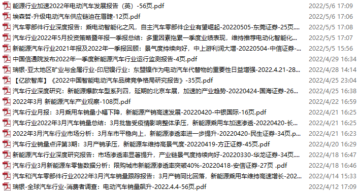 新能源汽车、电动汽车资料包,月度新增18份(2022.4.9-5.7)