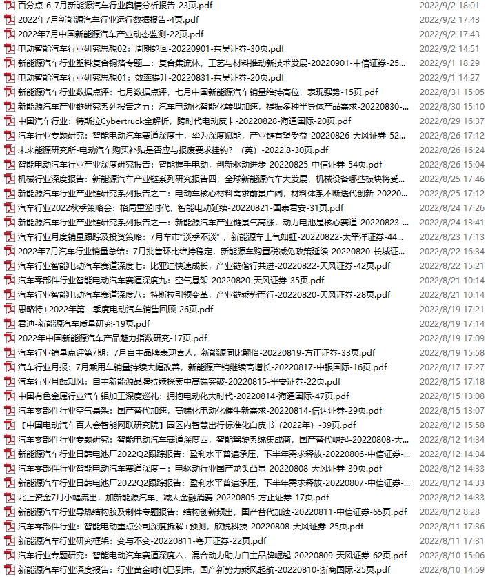 新能源汽车、电动汽车资料包,月度新增48份(2022.7.30-9.3)