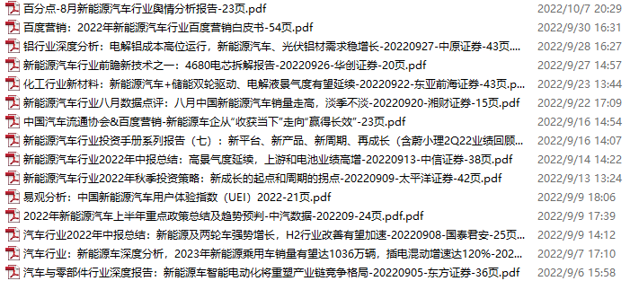 新能源汽车、电动汽车资料包,月度新增15份(2022.9.3-10.8)