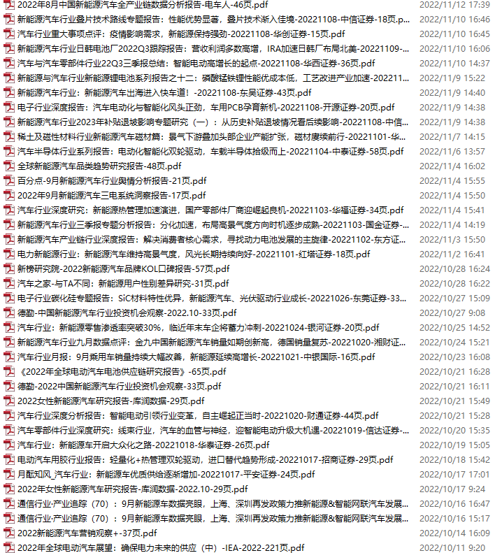 新能源汽车、电动汽车资料包,月度新增38份(2022.10.8-11.12)