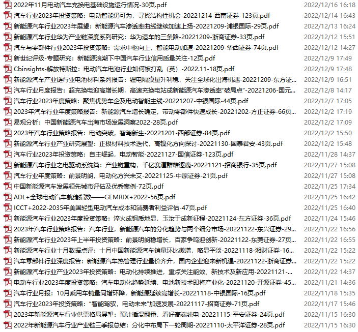 新能源汽车、电动汽车资料包,月度新增31份(2022.11.12-12.17)