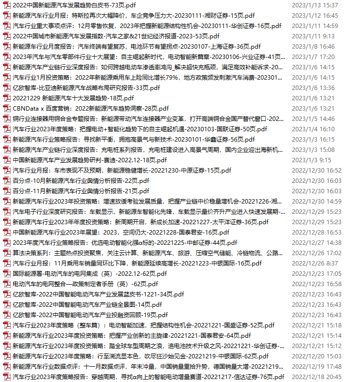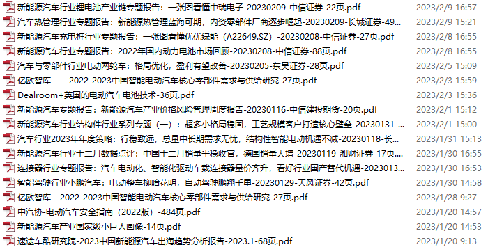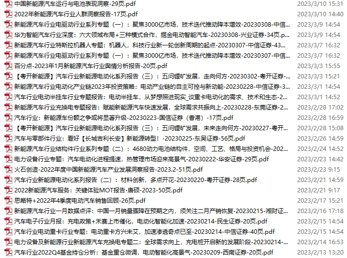 新能源汽车、电动汽车资料包,月度新增25份(2023.2.11-3.11)