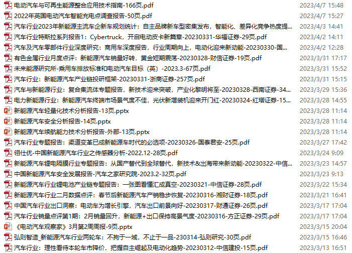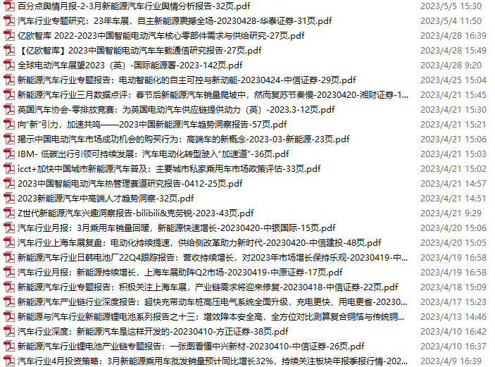 新能源汽车、电动汽车资料包,月度新增25份(2023.4.8-5.6)