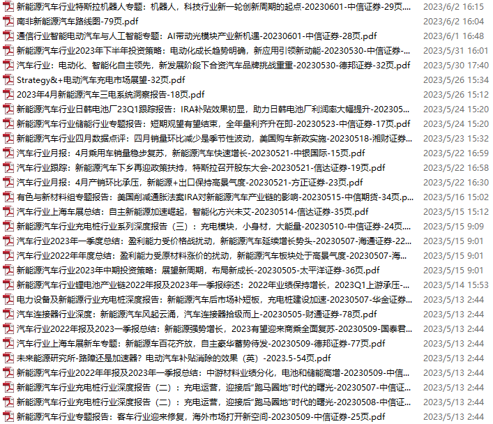 新能源汽车、电动汽车资料包,月度新增29份(2023.5.6-6.3)
