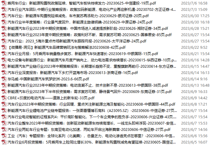 新能源汽车、电动汽车资料包,月度新增23份(2023.6.3-7.8)