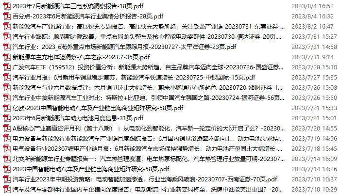 新能源汽车、电动汽车资料包,月度新增19份(2023.7.8-8.5)