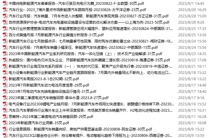 新能源汽车、电动汽车资料包,月度新增22份(2023.8.5-9.2)