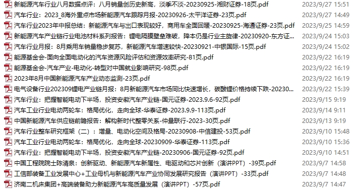 新能源汽车、电动汽车资料包,月度新增18份(2023.9.2-10.8)