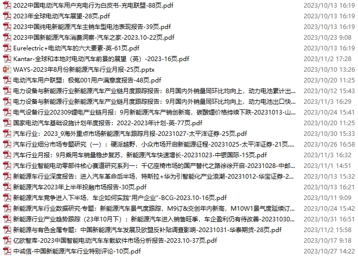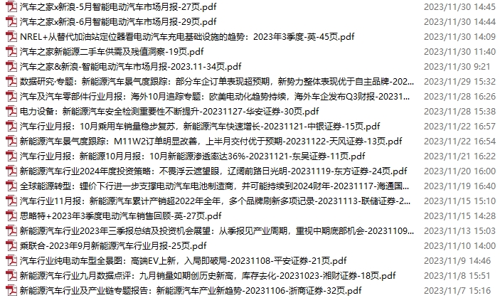 新能源汽车、电动汽车资料包,月度新增20份(2023.11.4-12.2)