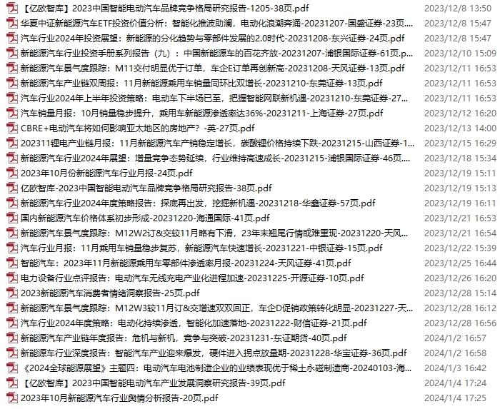 新能源汽车、电动汽车资料包,月度新增27份(2023.12.2-2024.1.6)