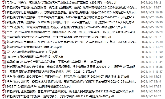 新能源汽车、电动汽车资料包,月度新增20份(2024.1.6-2.3)