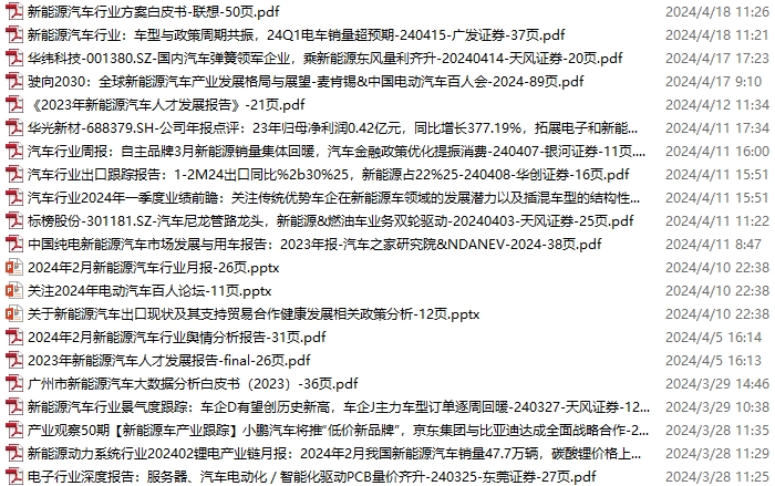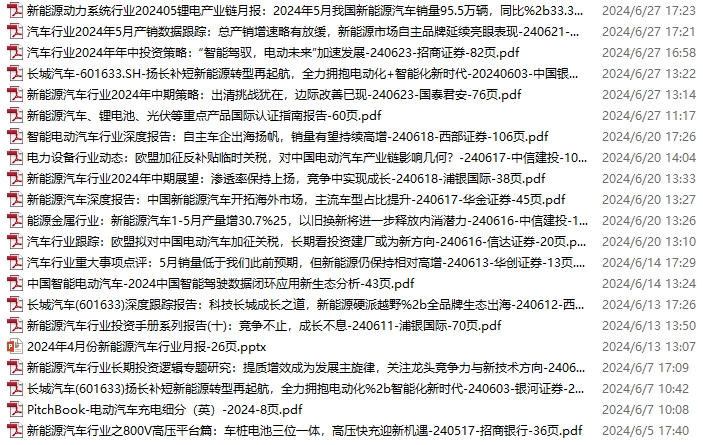 新能源汽车、电动汽车资料包,月度新增35份(2024.4.20-6.1)