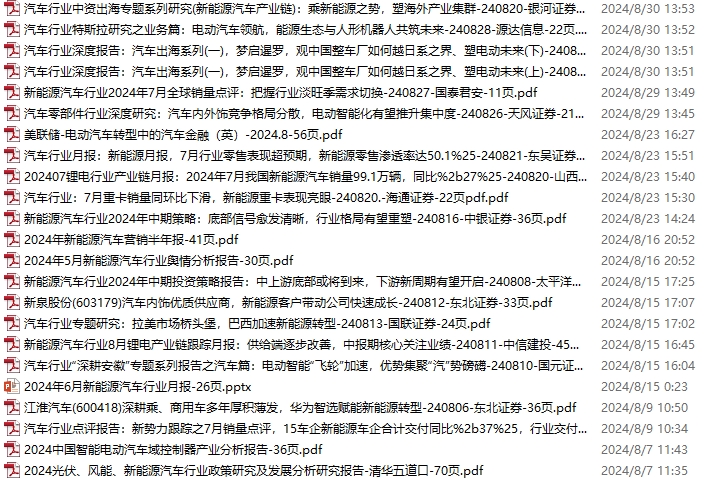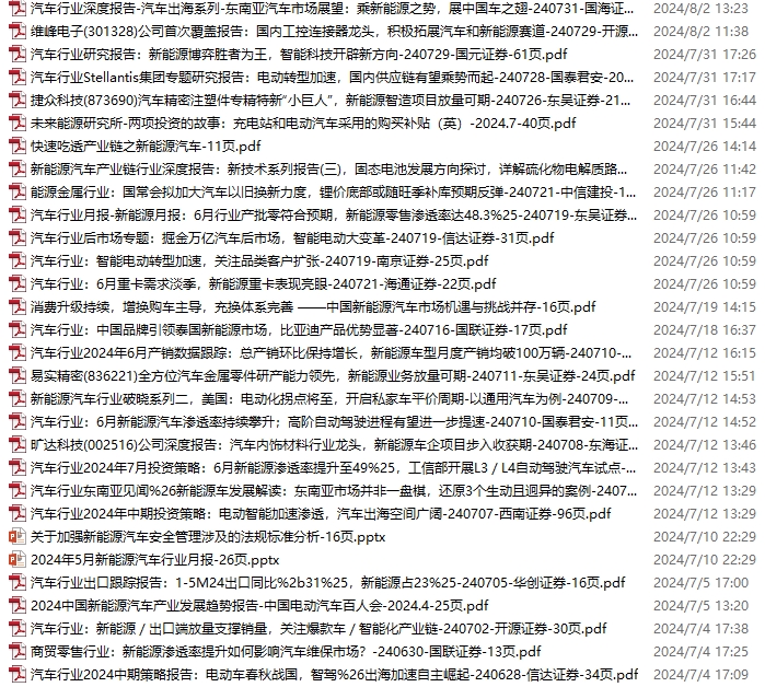 新能源汽车、电动汽车资料包,月度新增30份(2024.6.29-8.3)