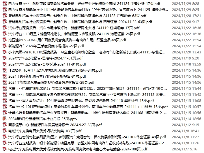 新能源汽车、电动汽车资料包,月度新增25份(2024.11.2-11.30)