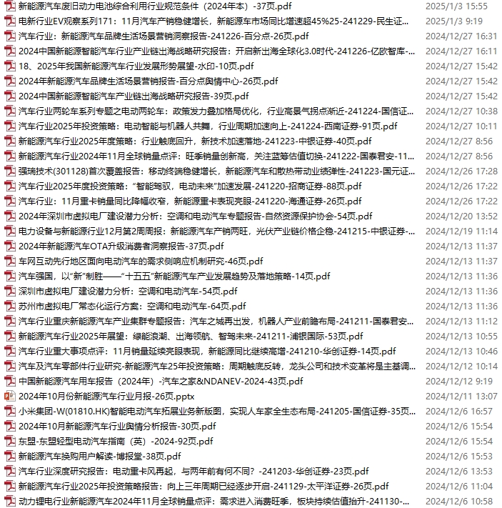 新能源汽车、电动汽车资料包,月度新增34份(2024.11.30-2025.1.4)