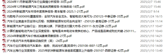 新能源汽车、电动汽车资料包,月度新增11份(2025.1.4-2.8)