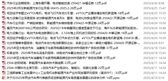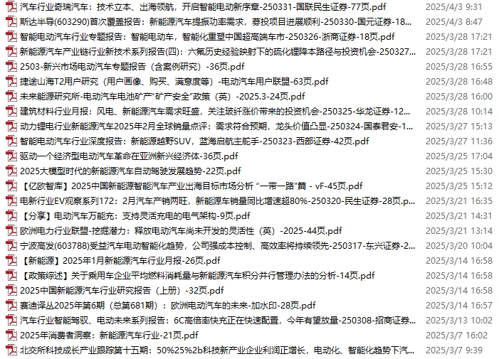 新能源汽车、电动汽车资料包,月度新增24份(2025.3.1-4.5)