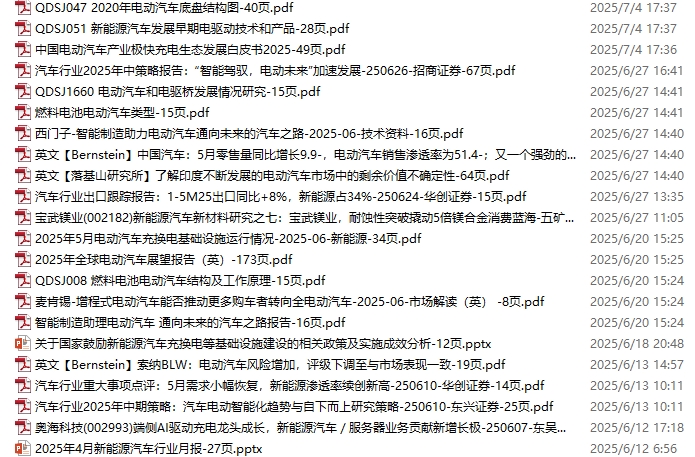 新能源汽车、电动汽车资料包,月度新增25份(2025.5.10-6.7)