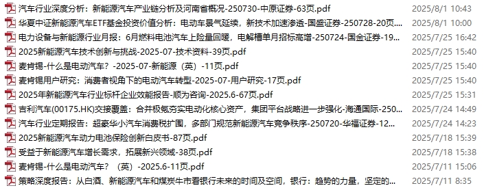 新能源汽车、电动汽车资料包,月度新增13份(2025.7.4-8.1)