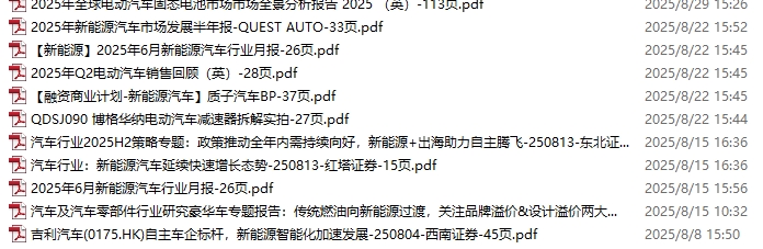 新能源汽车、电动汽车资料包,月度新增11份(2025.8.1-8.29)