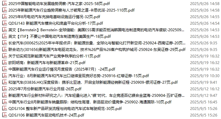 新能源汽车、电动汽车资料包,月度新增18份(2025.-8.29-10.10)