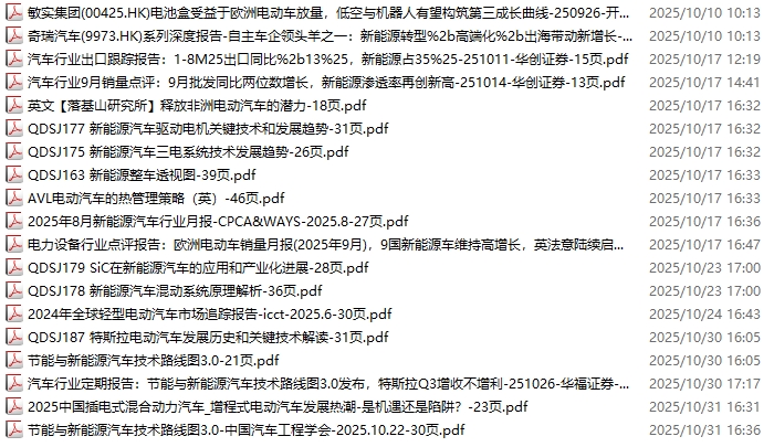 新能源汽车、电动汽车资料包,月度新增19份(2025.10.10-10.31)