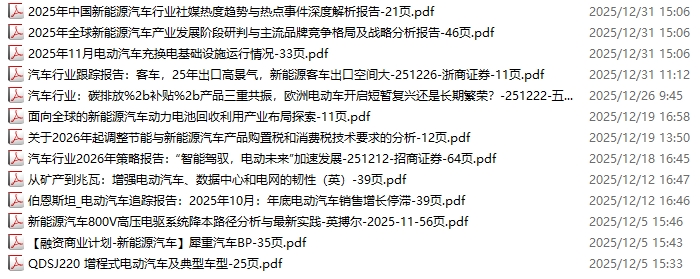 新能源汽车、电动汽车资料包,月度新增13份(2025.11.28-2026.1.2)