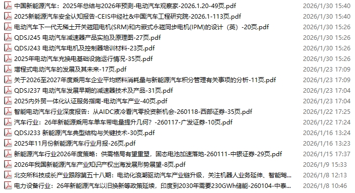 新能源汽车、电动汽车资料包,月度新增18份(2026.1.2-1.31)
