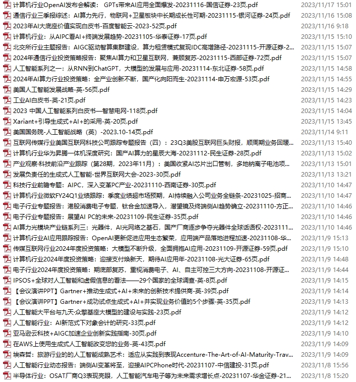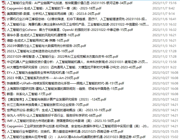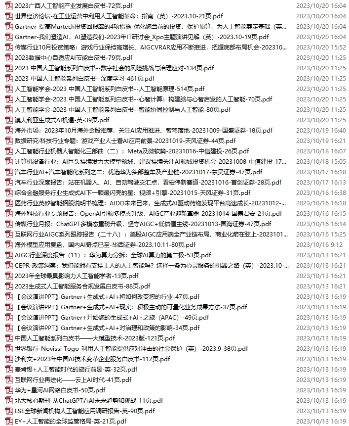 AI、人工智能资料包,月度新增62份(2023.10.21-11.18)