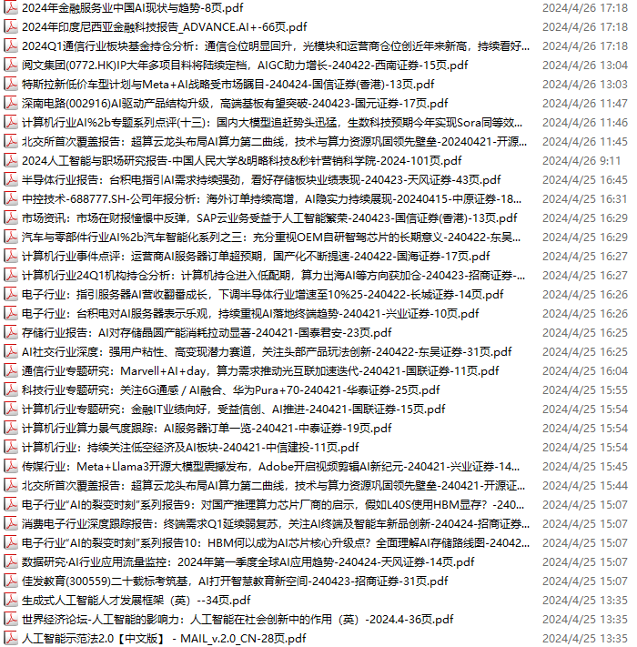 AI、人工智能资料包,月度新增149份(2024.3.23--2024.4.20):