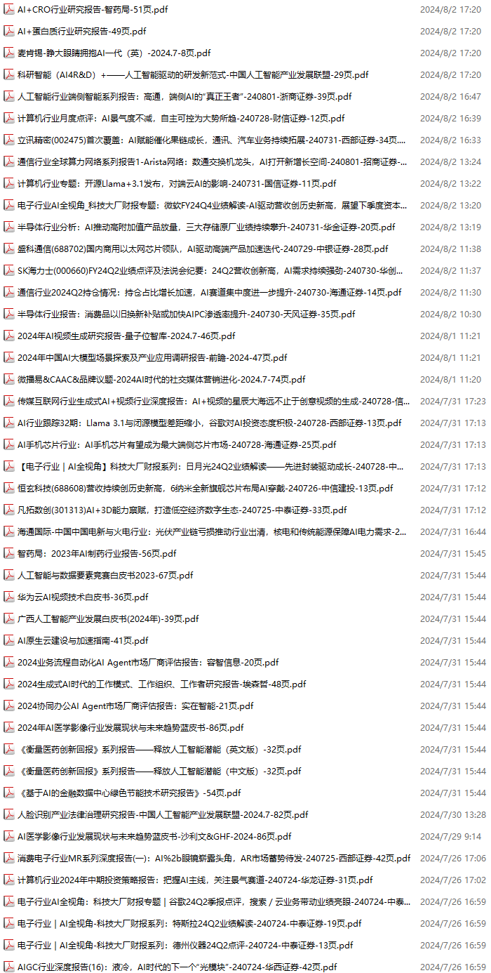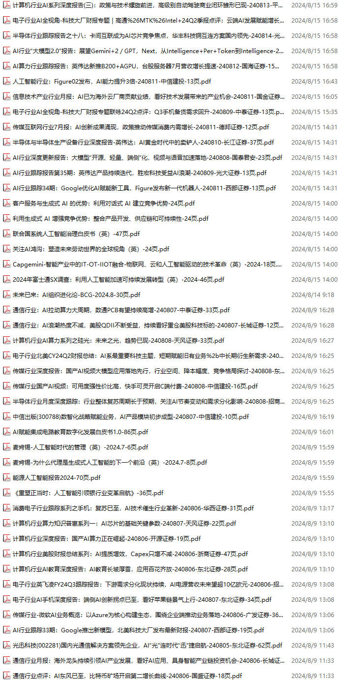 AI、人工智能资料包,月度新增170份(2024.8.3--2024.8.31):