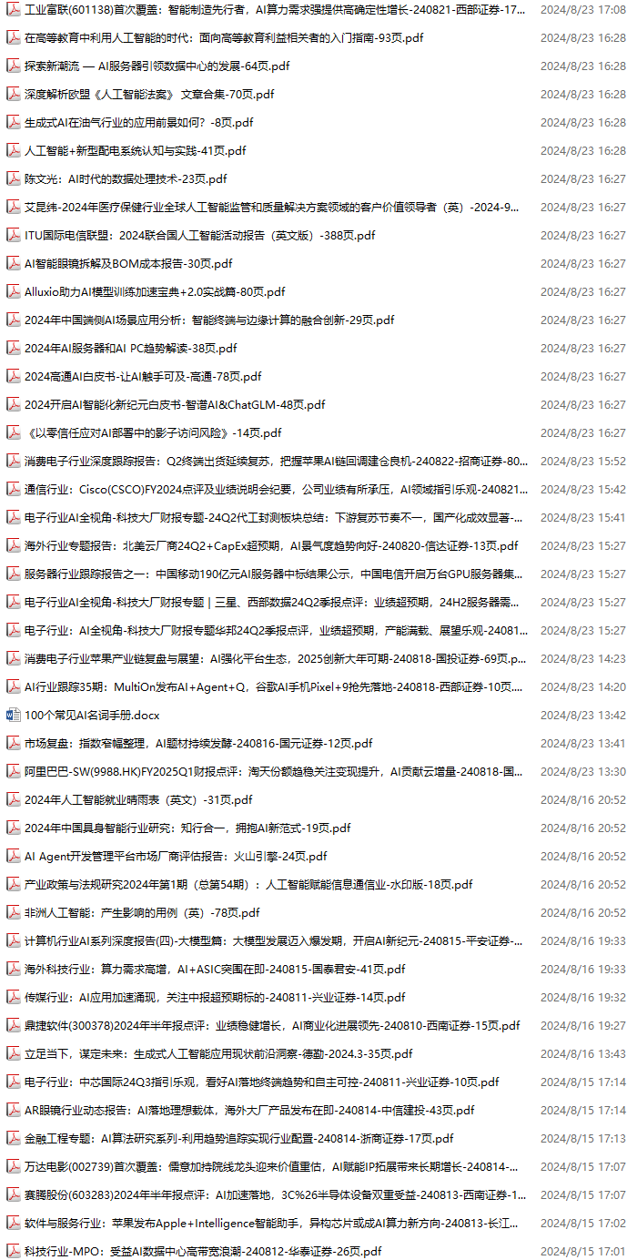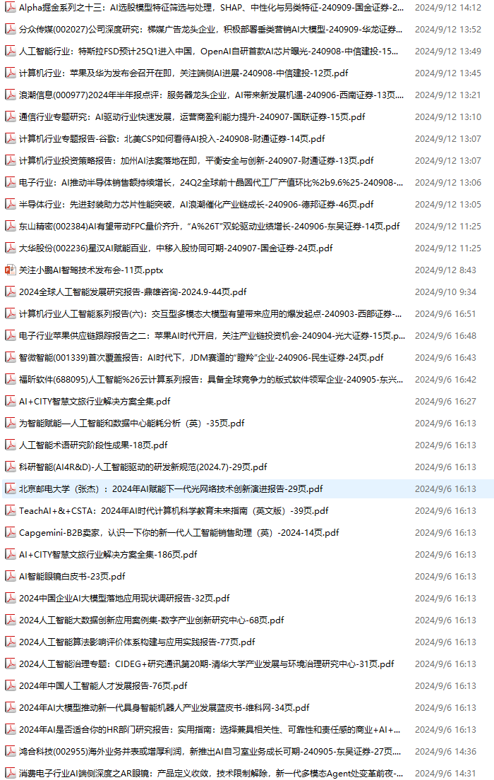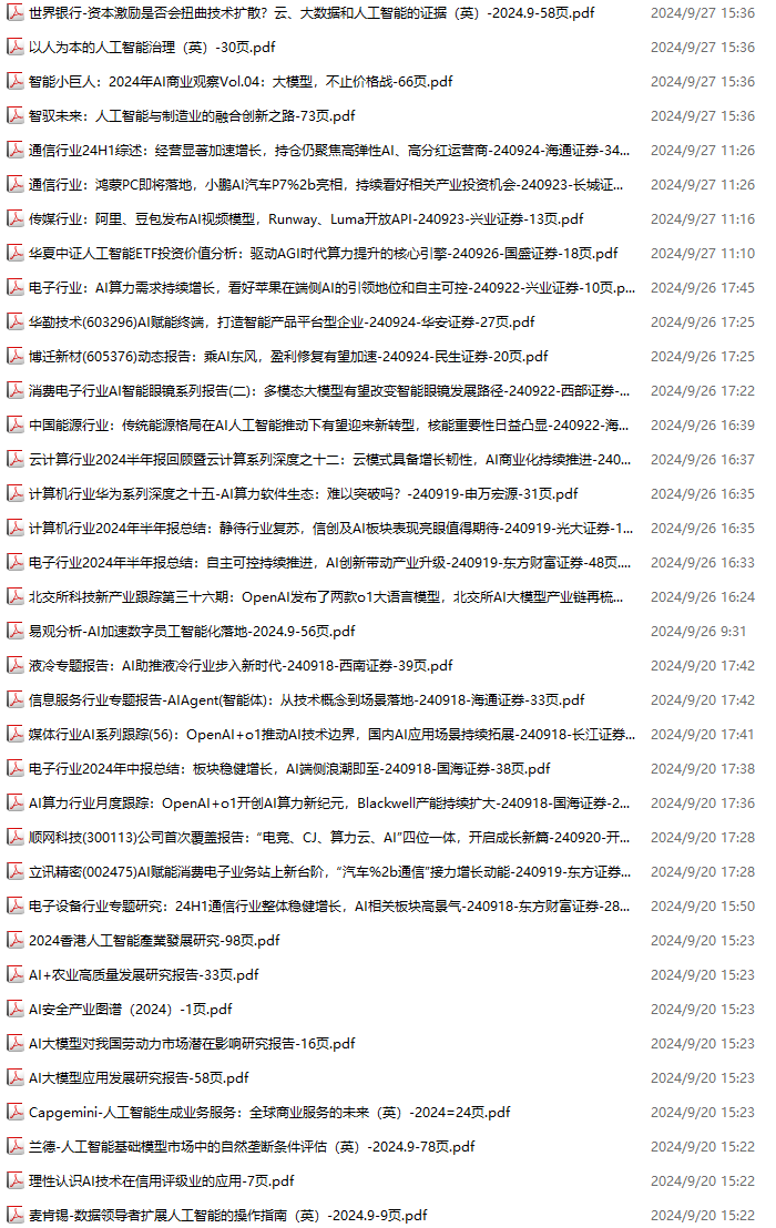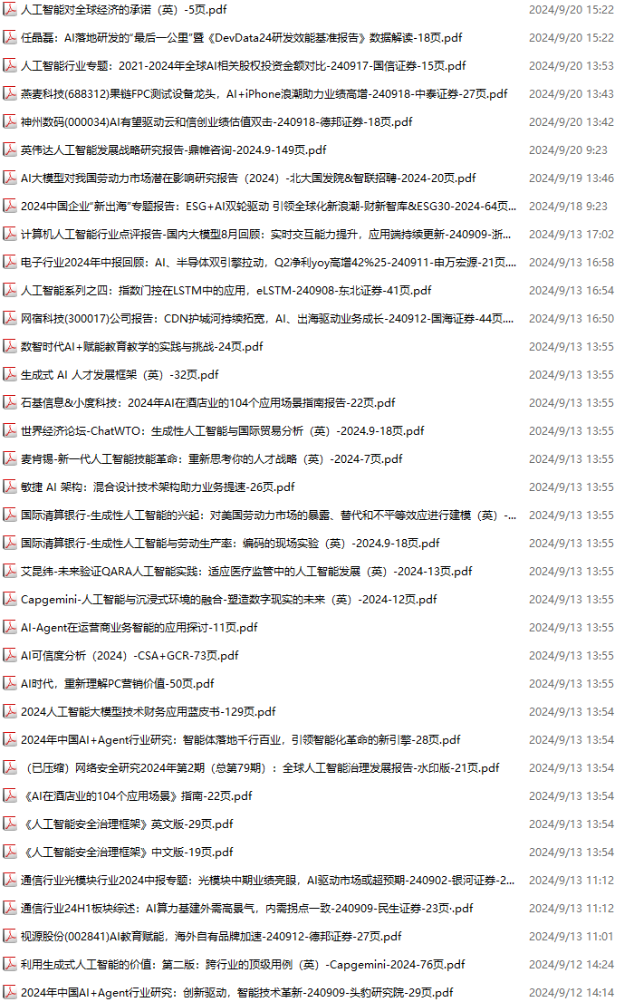 AI、人工智能资料包,月度新增157份(2024.8.31-2024.10.6):