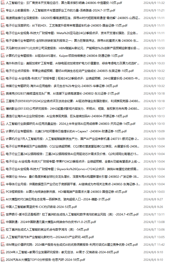 AI、人工智能资料包,月度新增233份(2024.6.29--2024.8.3):