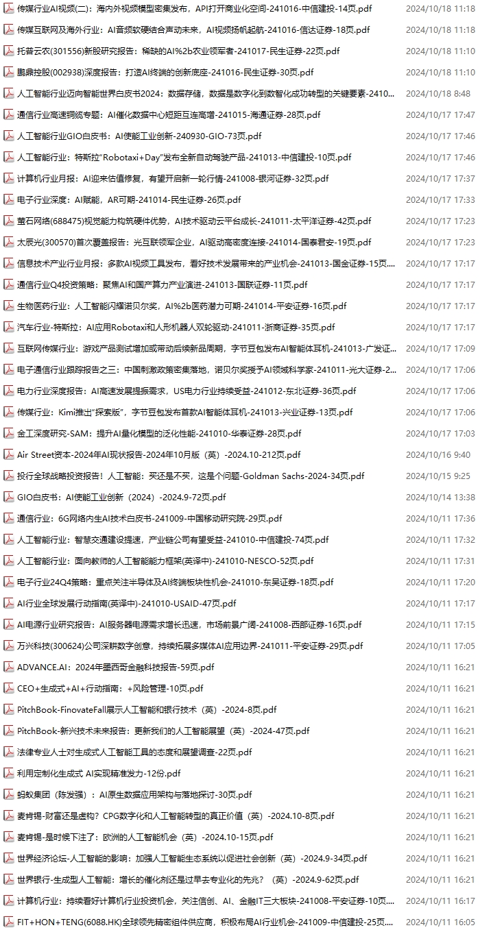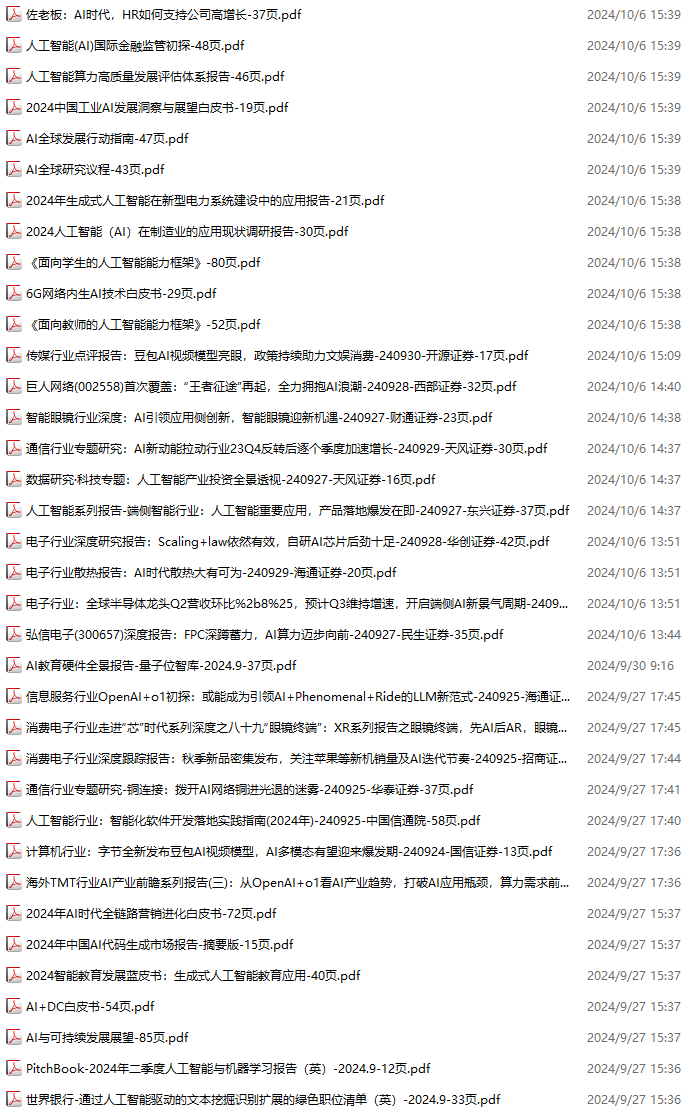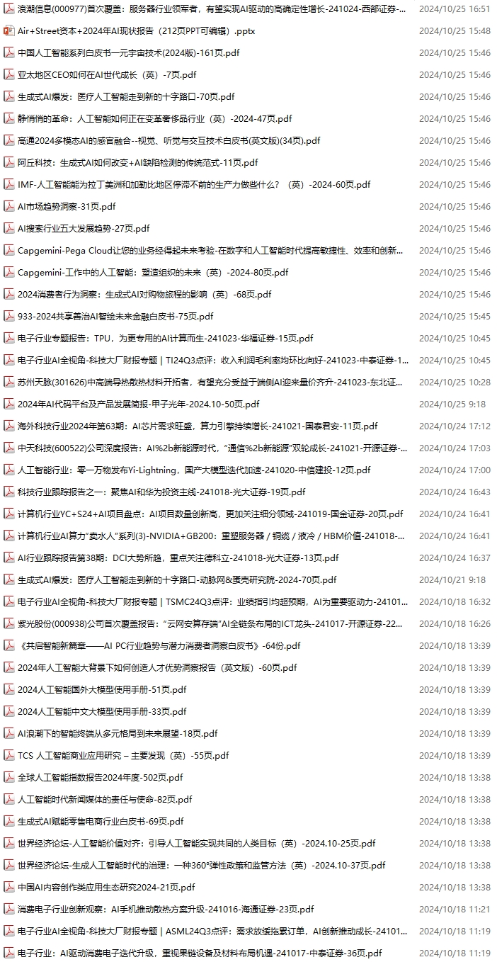 AI、人工智能资料包,月度新增148份(2024.10.6--2024.11.2):