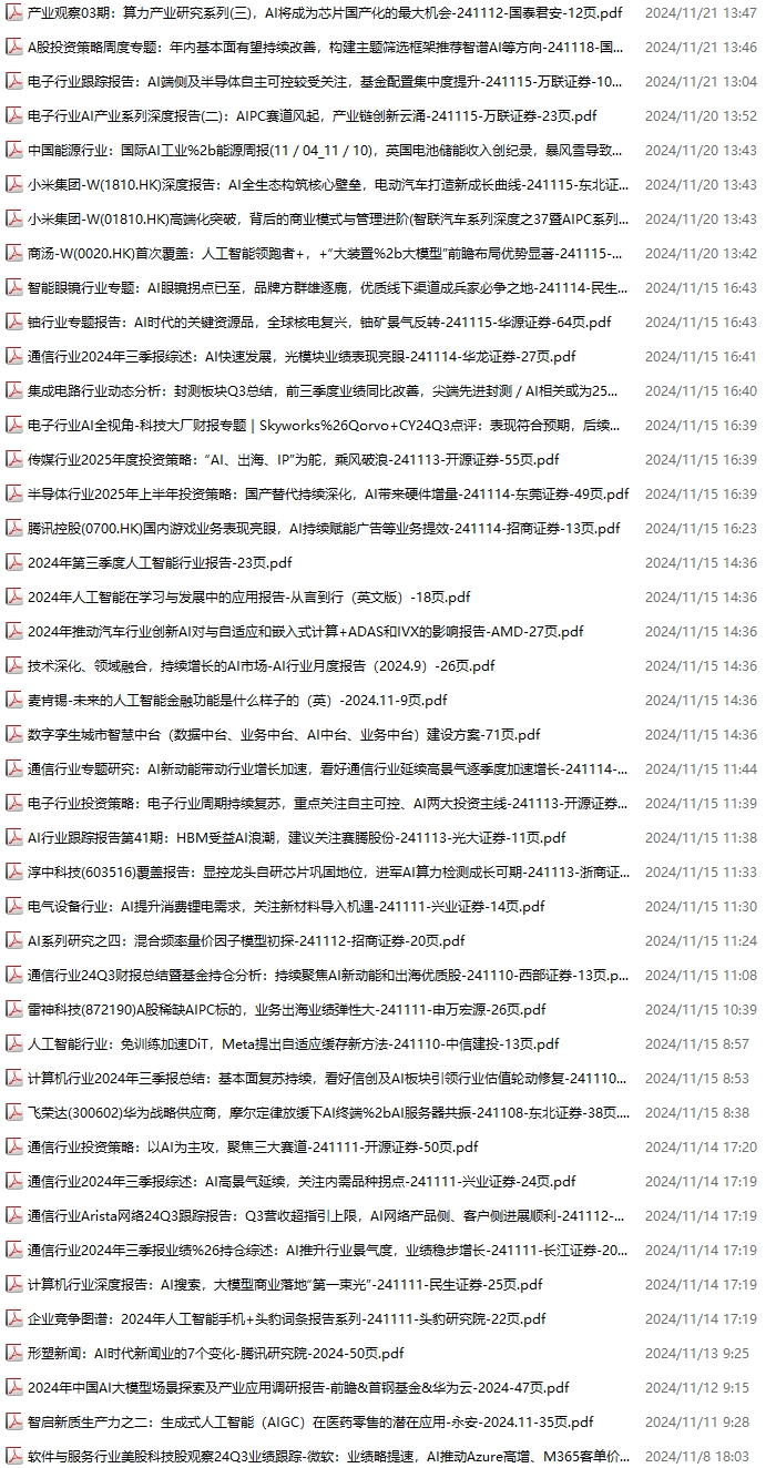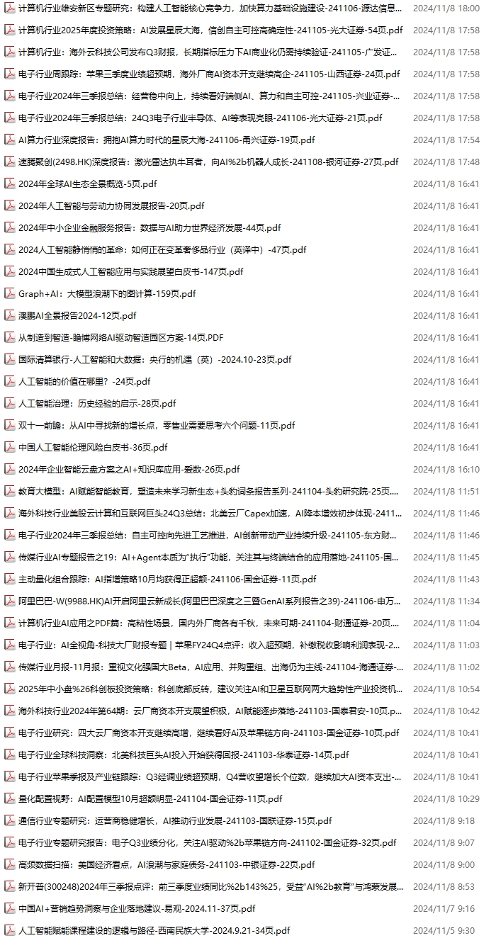 AI、人工智能资料包,月度新增171份(2024.11.2-2024.11.30):