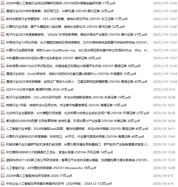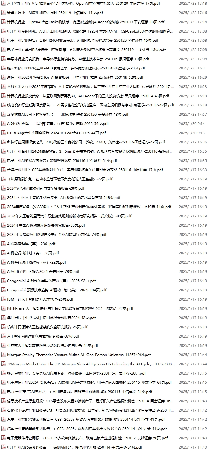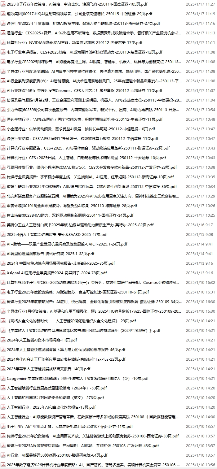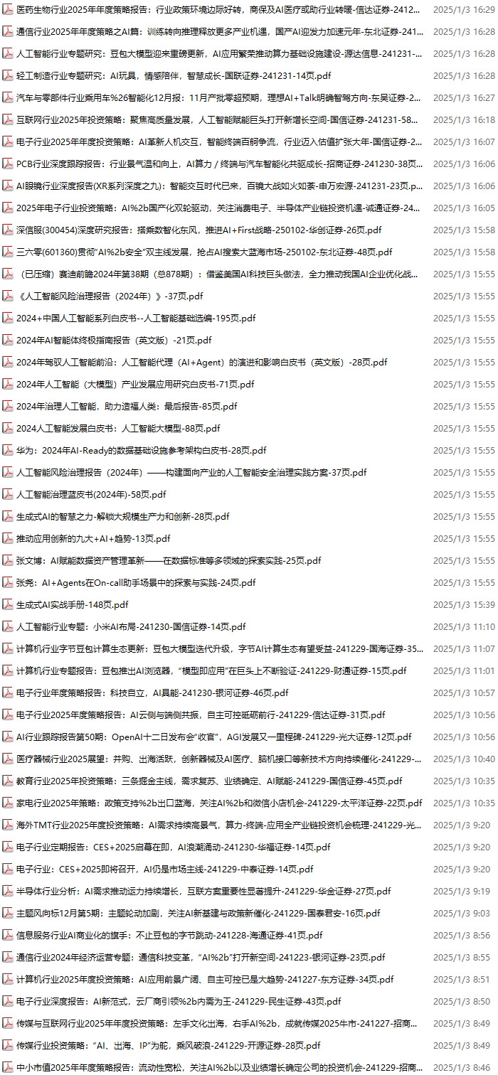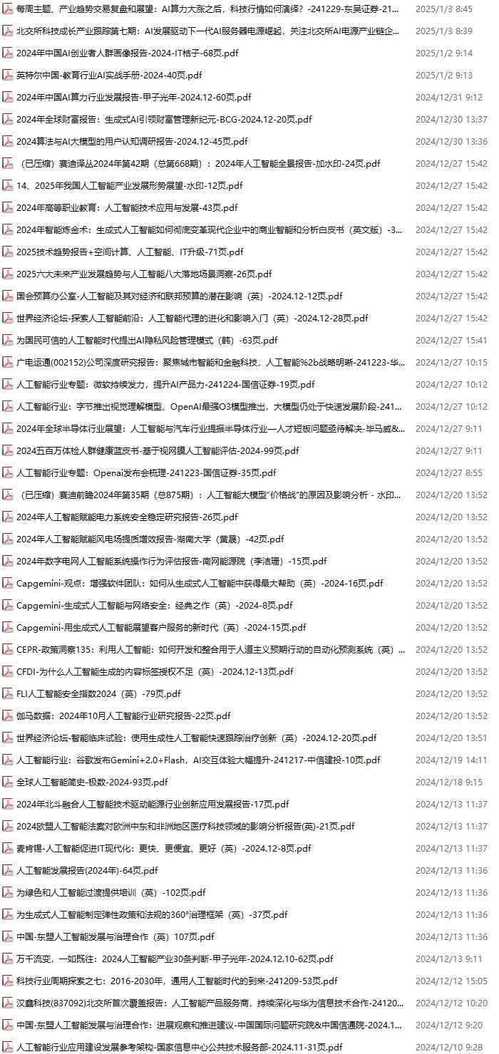AI、人工智能资料包,月度新增118份(2024.11.30-2025.1.4):