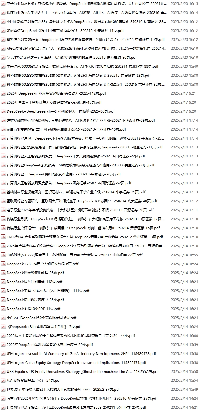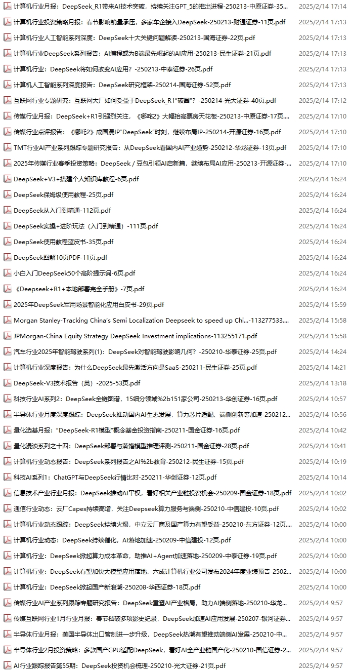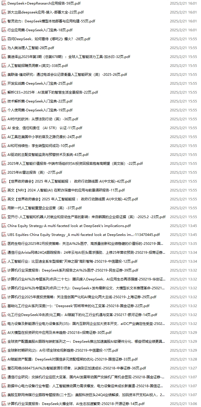 【新增专题 】DeepSeek, 102份,更新到2025.2.14
