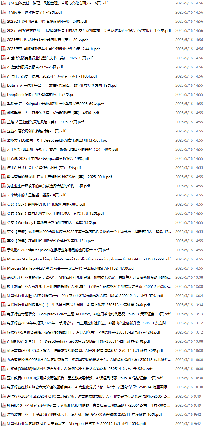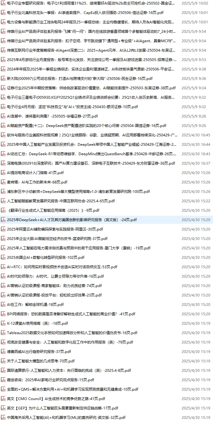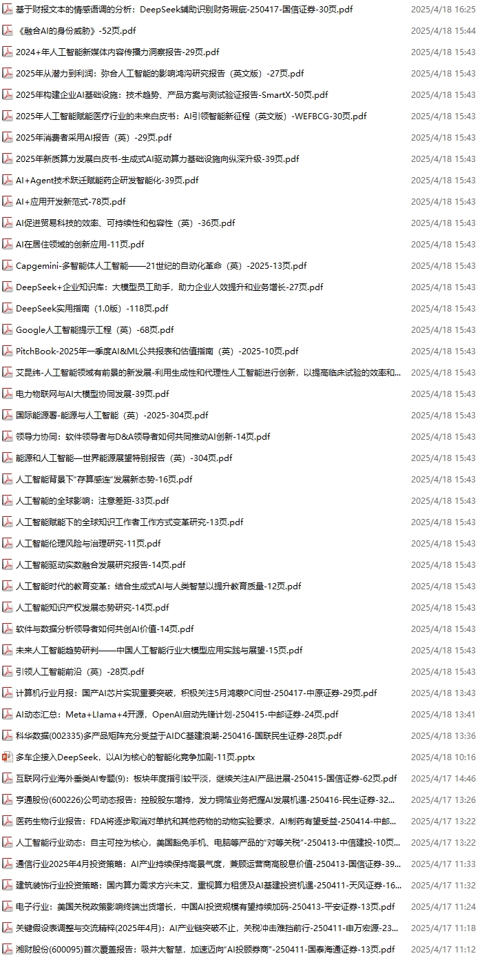 AI、人工智能、DeepSeek资料包,月度新增286份(2025.4.4-2025.5.9):