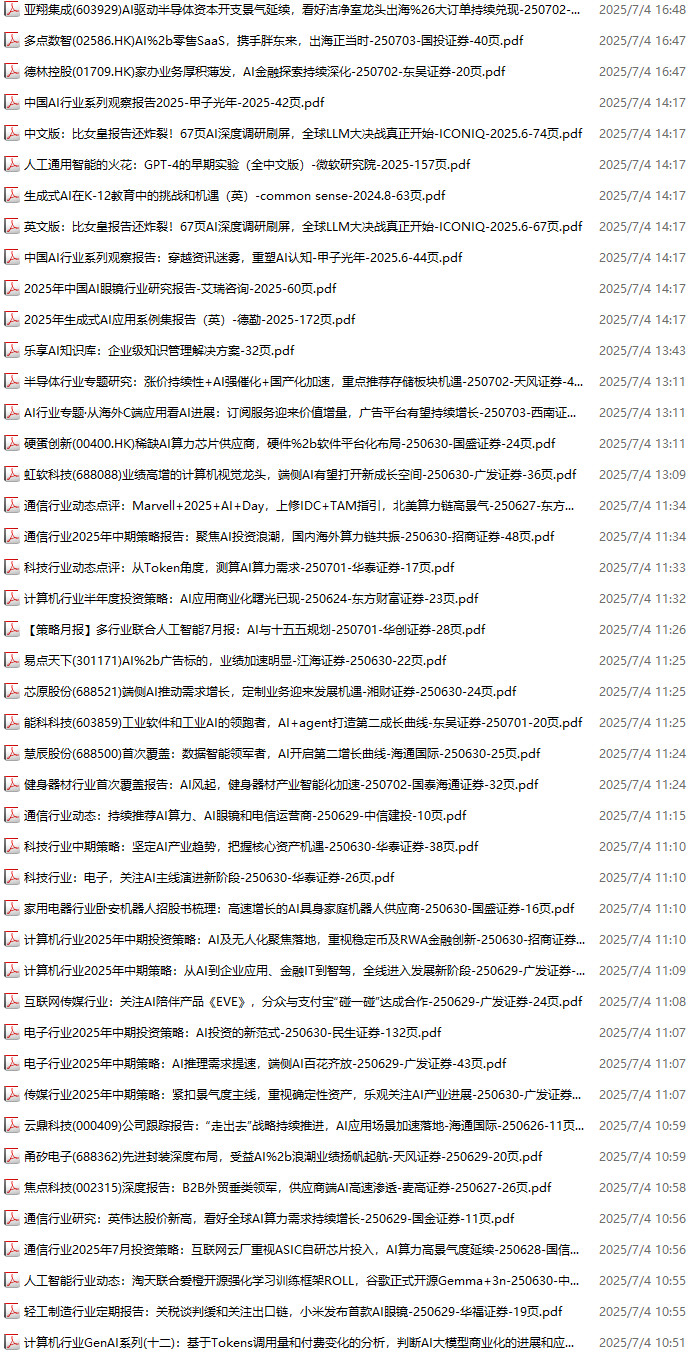 AI、人工智能、DeepSeek资料包,月度新增345份(2025.6.6-2025.7.4):