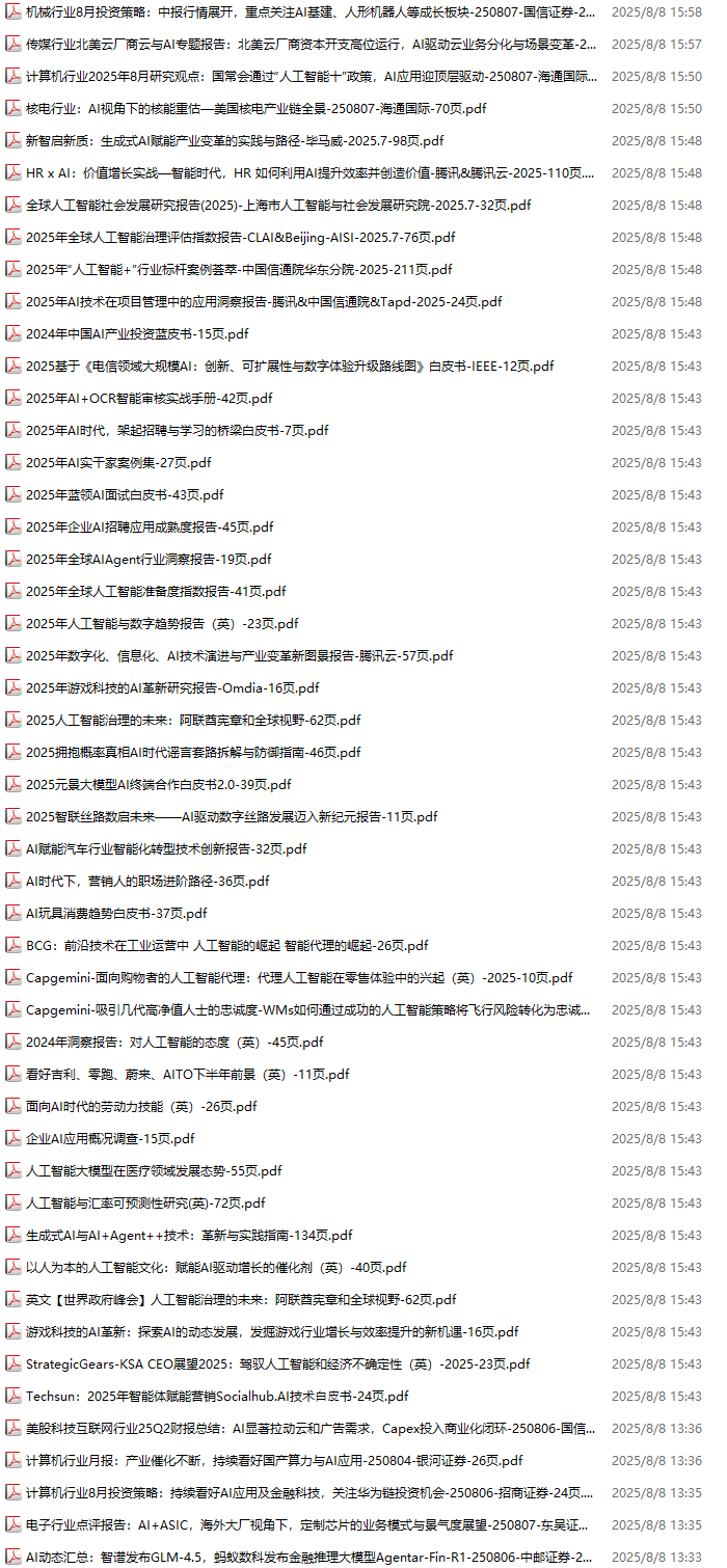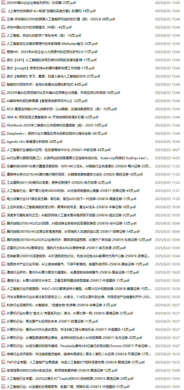 AI、人工智能、DeepSeek资料包,月度新增312份(2025.8.1-2025.8.29):